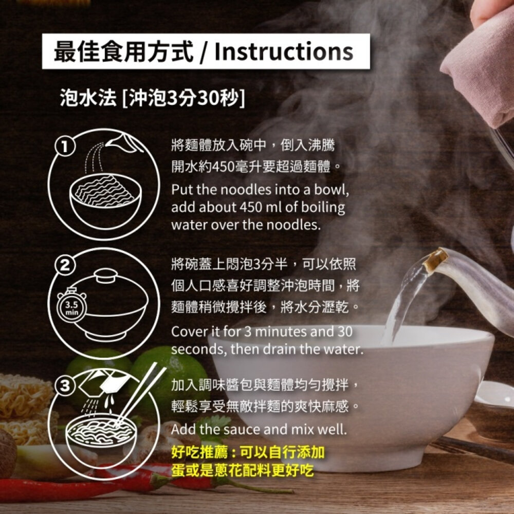 ▶ 非油炸風乾麵體泡出真麵口感,麵條Q滑升級超吸醬