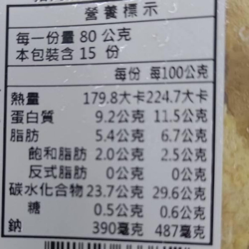 成分:豬里肌(加拿大/西班牙)、水、酥炸粉A{麵粉、麵包屑〔麵粉〔小麥麵粉、維生素C(抗氧化劑)、澱粉水解酵素(含樹薯澱粉、糊精)、聚木醣酵素(含樹薯澱粉、麵粉)、磷脂酵素(含樹薯澱粉、麵粉)〕、鹽、糖、酵母〕、玉米澱粉、碳酸氫鈉、酸性焦磷酸鈉、L-麩酸鈉、乙醯化己二酸二澱粉、β-胡蘿蔔素}、酥炸粉B(樹薯澱粉、蛋白粉、大豆油、食鹽、胡椒、紅椒色素)、調味料(食鹽、L-麩酸鈉、洋蔥、麥芽糊精、玉米粉、二氧化矽、蒜粉、紅薯渣粉、辣椒粉、胡椒粉、大蒜萃取物、大豆油)、醬油、小麥澱粉、小麥蛋白、多磷酸鈉、玉米糖膠、分離大豆蛋白(非基改)、偏磷酸鉀、甜味劑(D-山梨醇、這糖素)