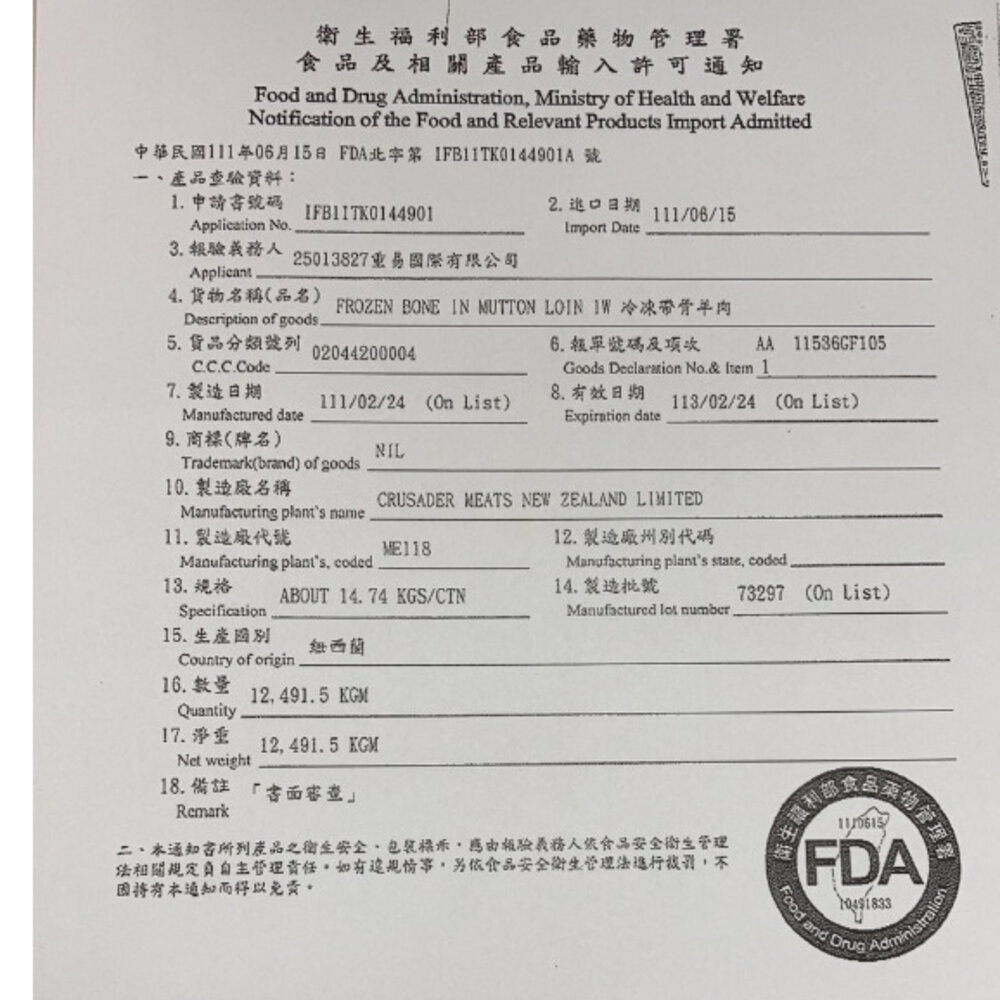 保存期限:冷凍-18度C以下保存1年,有效期限依外包狀標示