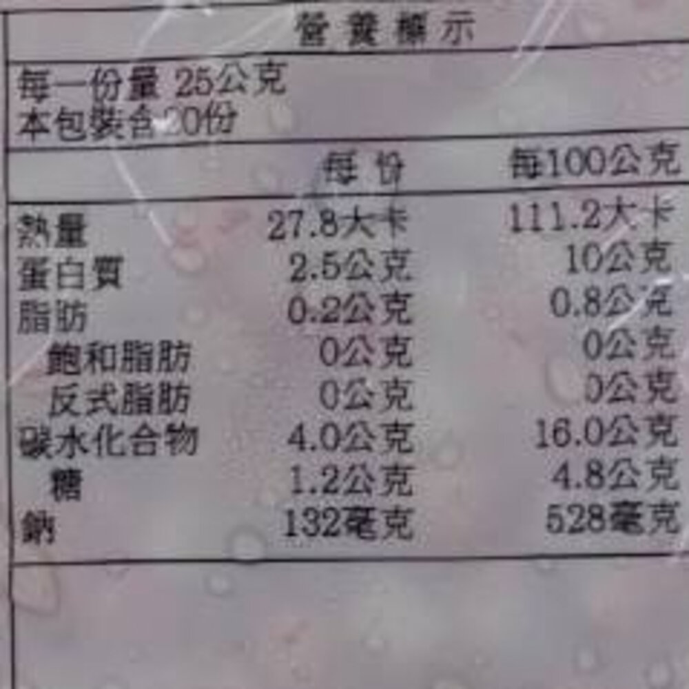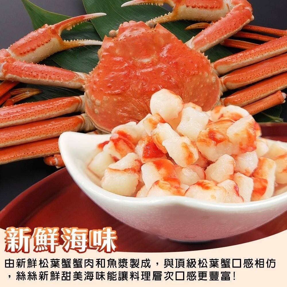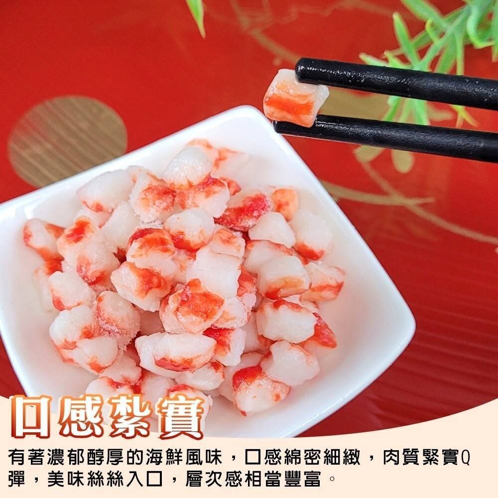 成分:金線魚漿、雞蛋、水、木薯澱粉、馬鈴薯澱粉、糖、食鹽、小麥澱粉、棕櫚油、三葉真蟹抽取物、鯷魚抽取物、麵包蟹香味料、味精、5'-次黃嘌呤核苷磷酸二鈉、5'-鳥嘌呤核苷磷酸二鈉、雞蛋白、碳酸鈣、胭脂紅提取物、紅椒色素