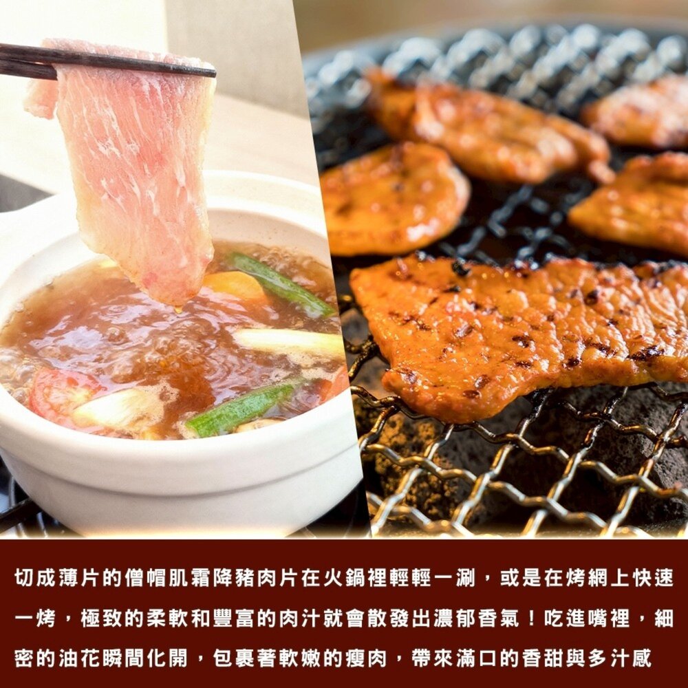 嚴選優質肉品,黃金雪紋有油脂但吃起來爽脆不膩口,