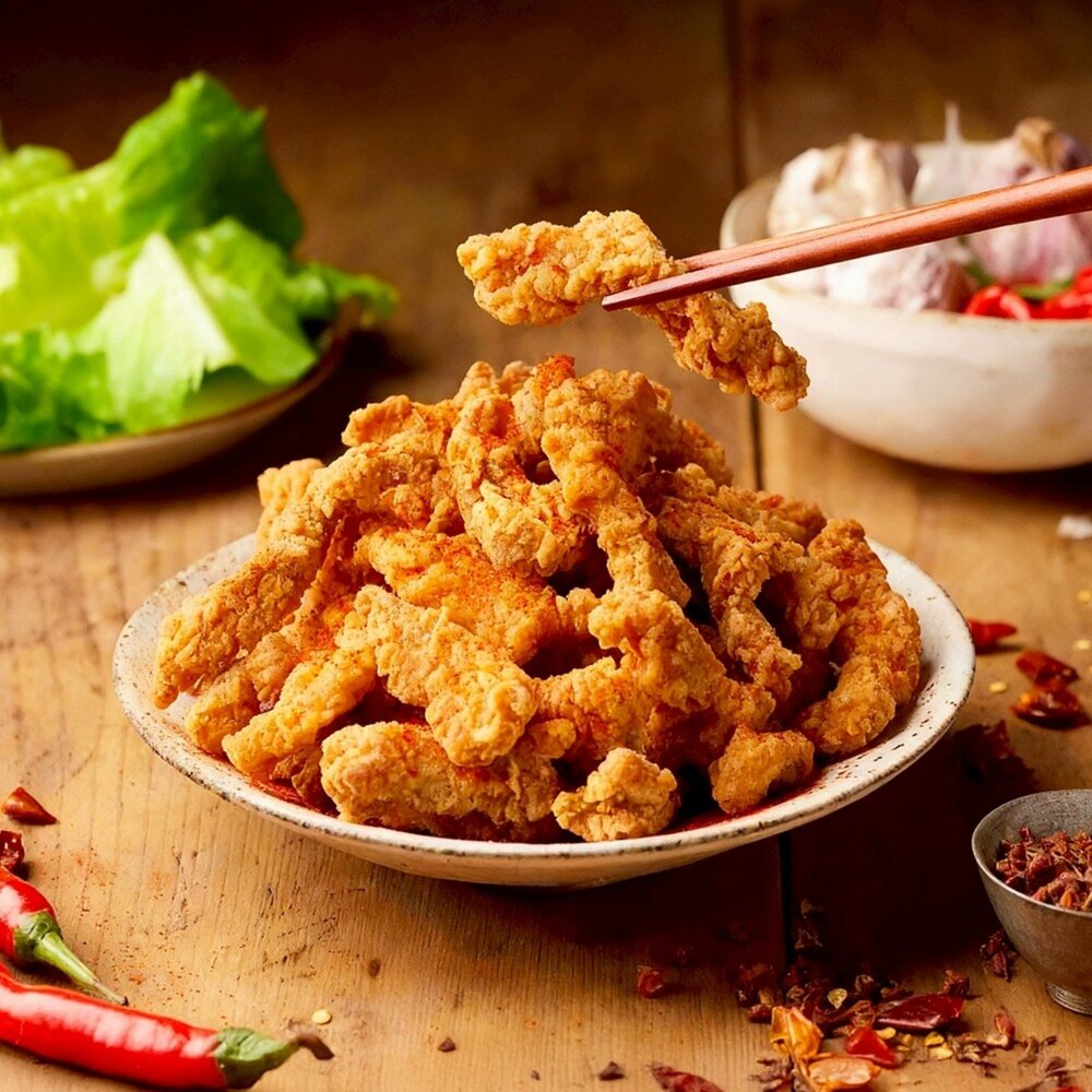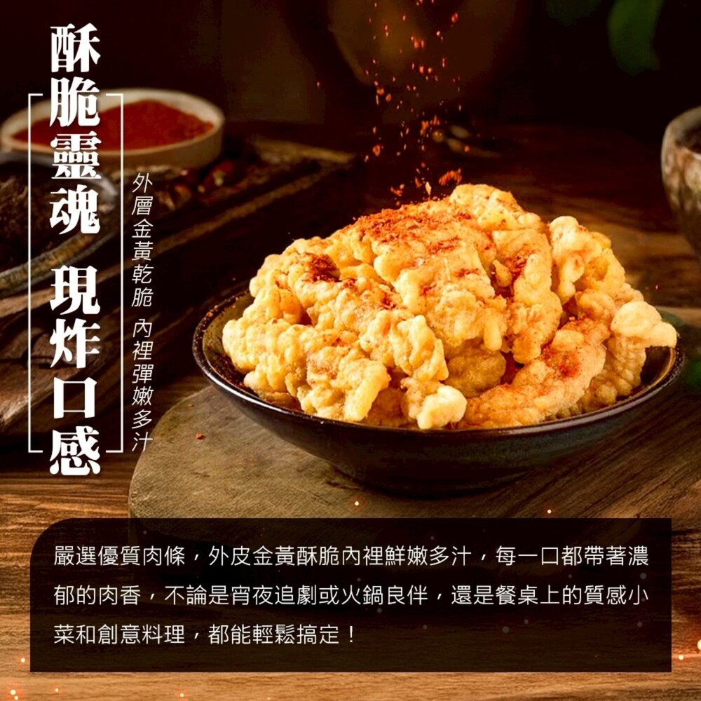 成分:雞肉、水、酥炸粉(麵粉、樹薯澱粉、玉米澱粉、馬鈴薯澱粉、鹽、碳酸氫鈉、L-麩酸鈉、酸性焦磷酸鈉、乙醯化己二酸二澱粉、乳酸鈣、關華豆膠、麥芽糊精、油性辣椒紅)、小麥澱粉、小麥蛋白、多磷酸鈉、玉米糖膠、調味料(雞肉、麥芽糊精、鹽、L-麩酸鈉、糖、5'-次黃嘌呤核苷磷酸二鈉、5'-鳥嘌呤核苷磷酸二鈉