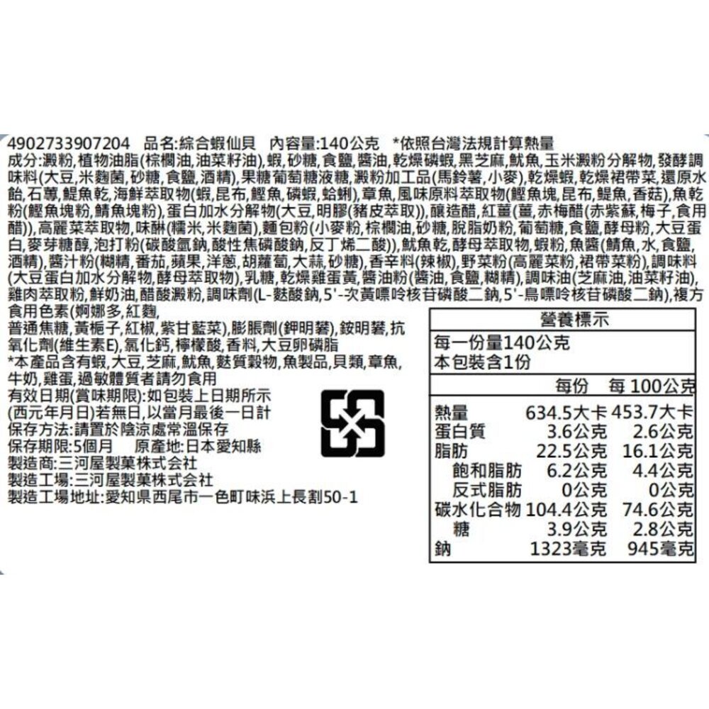 保存期限:常溫保存5個月,有效期限依外包狀標示