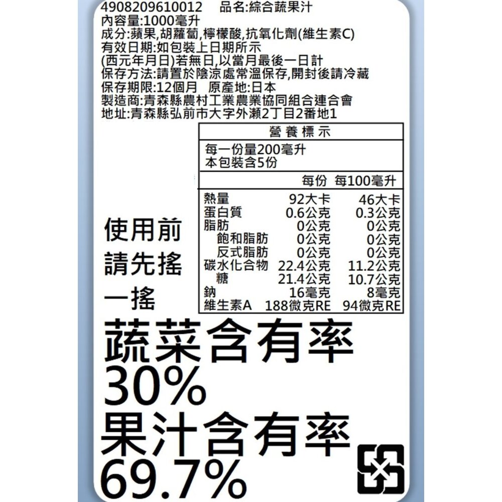 保存期限:常溫保存12個月,開封後敬請盡快飲用完畢