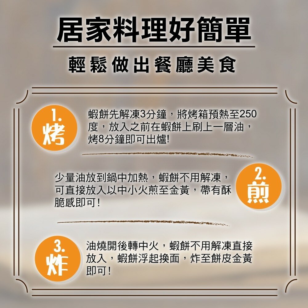 成分:蝦仁、高級魚漿、非基改玉米粉、豬板油、糖、胡椒粉、鹽、酵母萃取物